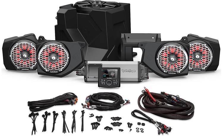 • Element Ready UTV system includes receiver, two sets of speakers, a 5-channel amp, and a 10″ subwoofer